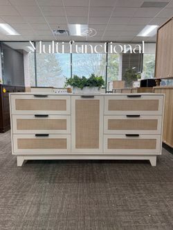 Multi functional Storage Cabinet/Buffet Cabinet/TV Stand. White Rattan Dresser with 6 Drawers 55” L Large Storage Boho Farmhouse Style Perf$135Sugar Hill, GA