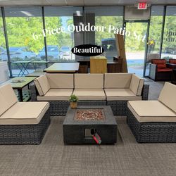 6-Piece Outdoor Patio Sectional Set, Dark Gray PE Wicker Sofa with Beige Cushions ➕ Fire Pit Table, Perfect for Backyard, Garden, or Poolside Gatherin$378Buford, GA