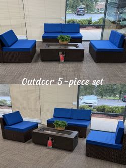 Outdoor 5-piece set with Fire Pit🔥Dark Brown PE Wicker Sofa with Cushions ➕ Fire Pit Table, Perfect for Backyard, Garden, or Poolside Gat$320Sugar Hill, GA