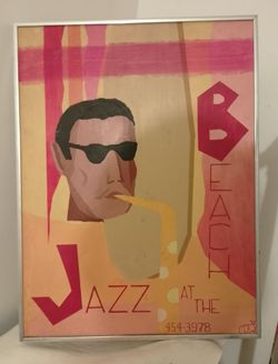 VINTAGE 1971 "JAZZ AT THE BEACH" SIGNED IN THE LOWER RIGHT HAND CORNER "1971 BFM". NEAR MINT CONDITION, FRAMED. OIL OR ACRYLIC ON CANVAS 2ft X 1.5ft$20Monrovia, CA