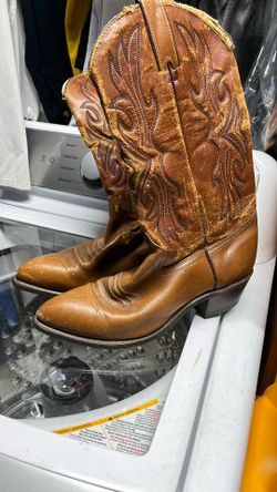 Dan Post 6946 cognac-brown Leather Western Cowboy Boots men Size US 9. Cool excellent vintage Dan Post boots.$100La Habra Heights, CA