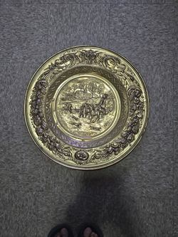 Vintage Brass Embossed Wall Plate: Ornate Fruit & Fish Border$30Passaic, NJ