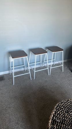 Set of 3 Modern Bar Stools – Wood & White Metal Frame$45Kansas City, KS