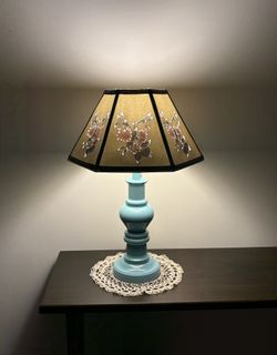 Beautiful Victorian Style Lamp. A Warm Teal Base with an Elegant and Unique Matching Floral Shade.$40Newton, NJ