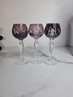 3 VTG Pasco Crystal Wine Glass Rose Cranberry Cut to Clear 4 oz 7” $65Los Banos, CA