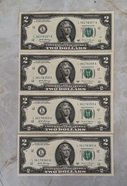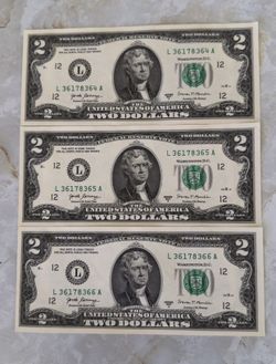 Sequential $2 Bill Notes$250Scottsdale, AZ