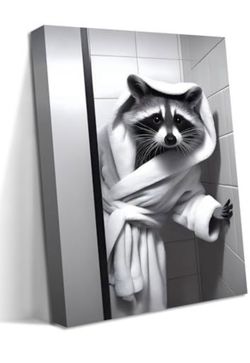 Funny Bathroom Wall Decor, Black and White Raccoon Canvas Wall Art, Humor Animal Decor Raccoon $10Rocky River, OH
