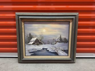 “Snowy Cabin Scene” by Mary Lou Payton – Original Framed Painting$45Hialeah, FL