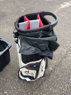 Golf Stand Bag TAYLORMADE BURNER 5 Way Black Red White Shoulder Strap Rain Cover the white, a little dirty, easy cleaning$40Chula Vista, CA