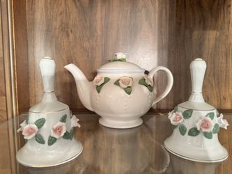 Vintage Rose Teapot And Twin Bells $15Wood Dale, IL