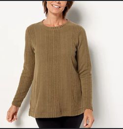 LOGO Lounge by Lori Goldstein - Brushed Rib Long Sleeve Top - Sleet Green $30Saint Paul, MN