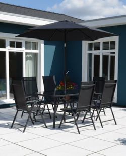 8-Piece Outdoor Patio Dining Set with Tilting Umbrella, Glass Table, & Folding Chairs$380El Monte, CA