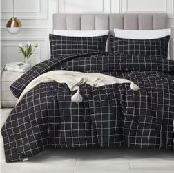 Andency Black Grid Comforter Set Twin Size (66x90 Inch), 2 Pieces(1 Grid Comforter and 1 Pillowcase), Summer Lightweight Microfiber Down Alternative B$20El Monte, CA