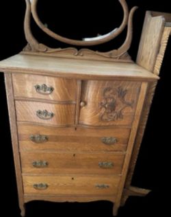 Antique Serpentine Tiger Oak Dresser With Harp-mounted Mirror$215Costa Mesa, CA