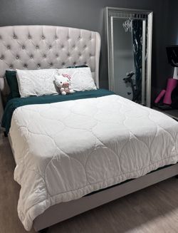 Living Spaces Light Gray Suede Upholstered Queen Bed Frame$800Chula Vista, CA