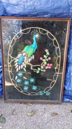 Vintage Velvet Peacock wall art on black velvet. $45Houston, TX