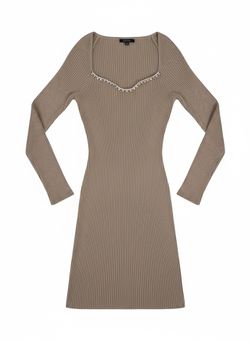 New Ribbed Knit Beige Pearl Square Neck Long Sleeve Dress - Perfect for Holidays Size M$15Stone Mountain, GA