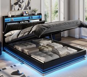 White Leather Bed Frame With Lighting Everything Must Go$300Chino, CA