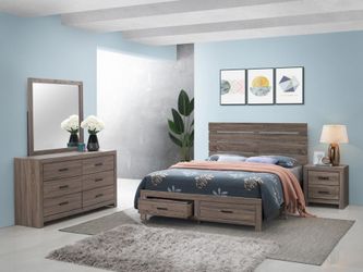 New 4 Pc Queen Bedroom Set With Queen Platform Storage Bedframe Dresser Mirror Nightstand On Sale Now $699Stockton, CA
