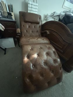 Tufted leather armchair with a matching ottoman.$300Las Vegas, NV
