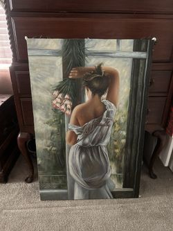 Vintage Oil Painting: Woman in White Dress by Window with Pink Roses$125Las Vegas, NV