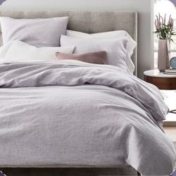 West Elm Sold Out!! Gorgeous NWT Lavender Melange Chambray Linen Sheet Set in CK + Bonus Euro Sham $325Los Angeles, CA