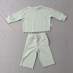 Baby Girl Floral Sweatshirt & Pants Set – Mint Green – Scalloped Hem$10Tucson, AZ