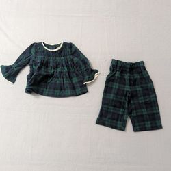 Baby Girl Green & Black Plaid Ruffle Outfit – Lace Trim Top & Pants Set$10Tucson, AZ