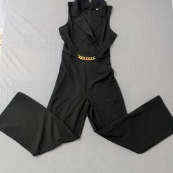 Women's Sleeveless Tuxedo Wrap Jumpsuit – Gold Chain Belt – Wide Leg – Black$15Tucson, AZ