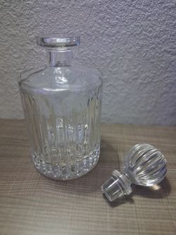 Vintage Mid-Century Ribbed Clear Glass Whiskey Decanter w/ Matching Ribbed Ball Stopper + Starburst Cut Base$20Saline, MI