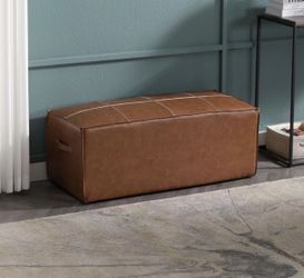Rectangular Vegan Leather Ottoman Bench Pouf Pouffe Upholstered Foot Stool with Two Side Handle for Living Room Kids Room Bedroom, Brown(18 * 40 * 16 $35San Jose, CA