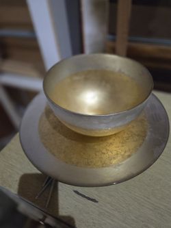 This is a mid-century Italian gold and silver leaf glass bowl and tray set. $100Naches, WA