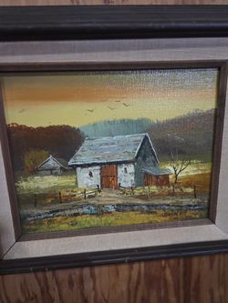 framed oil painting of a rural landscape, signed "WOODSON" in the bottom right corner.$45Naches, WA