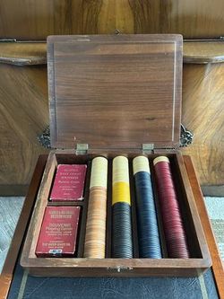 Antique Poker Chips in Wood Case with Playing Cards$250Arlington, VA