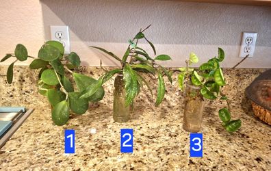 Set Of 3 Hoya Varieties Cuttings Rooted In Water, Vases Included$15Oceanside, CA