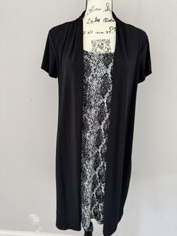 Black and white patterned dress with matching black cardigan $10Clifton, VA