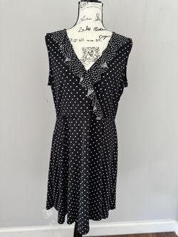 Black dress with white polka dots and ruffled neckline. Size m$12Clifton, VA