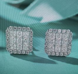 Men Princess Cut Moissanite Hip-Hop .925 Sterling Silver Stud Earrings. SG-0110$250Castro Valley, CA