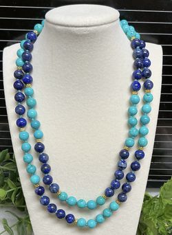 Natural 8 Mm Blue Lapis Lazuli And Turquoise Round Gemstone 36 Inch Necklace. SG-0031$52Castro Valley, CA