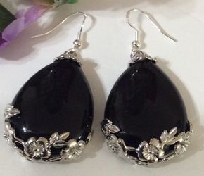 Tibet .925 Sterling Silver Teardrop, Black Onyx, Gemstone Hook Earrings. SG-0103$25Castro Valley, CA