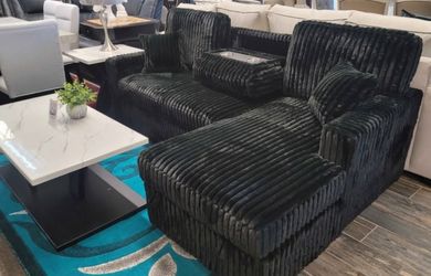 Black Jumbo corduroy sectional sofa with console and Ottoman$550Covina, CA