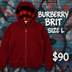 🔥 Burberry Brit Zip-Up Hoodie – Size L – Burgundy Plaid Hood 🔥$80West Babylon, NY