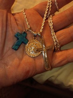 Rope Chain With 2 Crosses And 1 saint Christopher Medals In Perfect Condition $8New Prt Rchy, FL