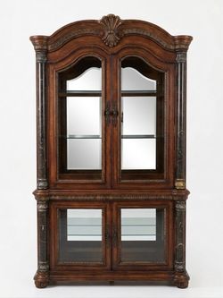 Traditional Carved Wood China Cabinet with Marble Pillars & Mirrored Back$1,500Tampa, FL