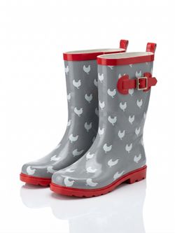 Women’s Fun Chicken Pattern Rain Boots - Grey with Red Trim and Buckle Detail - Size 9$40Tampa, FL
