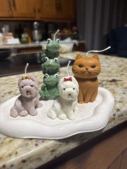 Handcrafted Animal Figurine Candles – Dogs, Cat & Frog Stack Set$25Willington, CT
