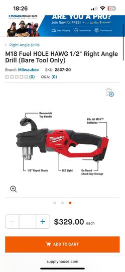 SoldUSED MILWAUKEE M18 FUEL™ HOLE HAWG® RIGHT ANGLE DRILL KIT$250Federal Way, WA