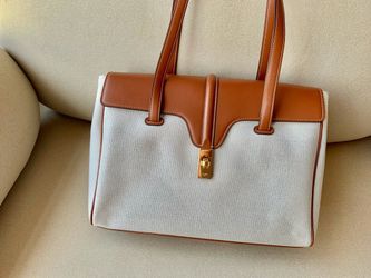 Medium-sized canvas-and-leather handbag, dimensions: 32 X 24 X 15CM