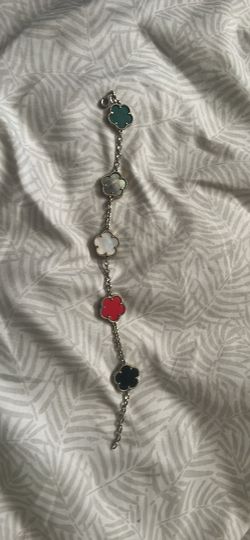 This is a clover motif bracelet featuring multiple colored inlays on a silver-tone chain$250Chicago, IL