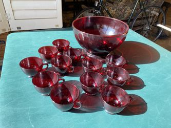 Anchor Hocking Royal Ruby Red Punch Bowl, Pedestal Stand And 12 Cups$50Glendale, AZ